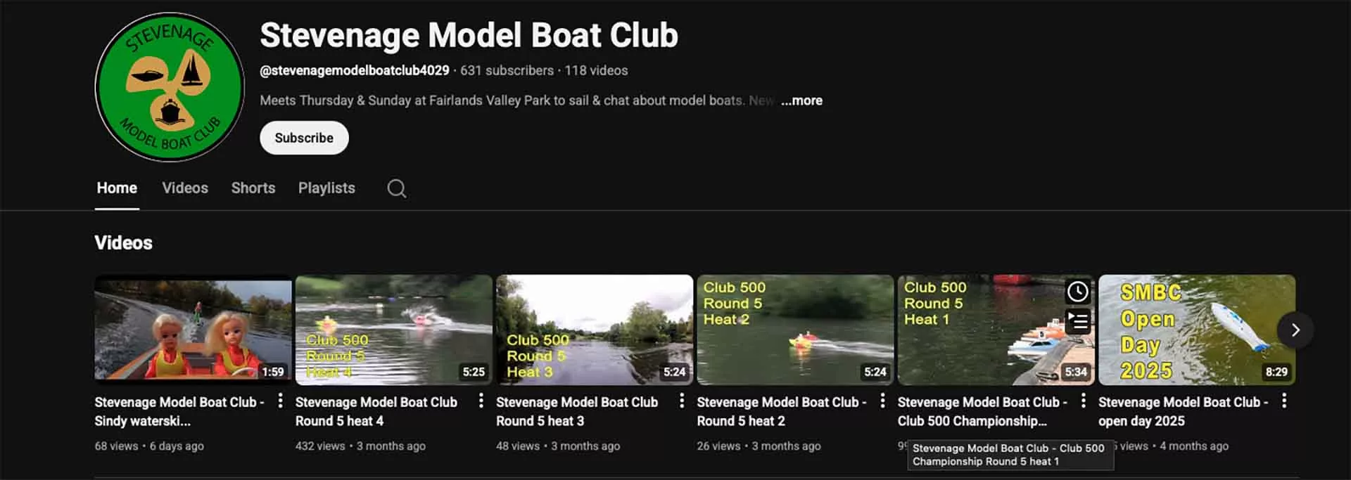 We have a news page updated every month or so to reflect what’s been happening at the lake, new video links, club 500 races etc. This year (2025) we covered Stotfold Steam Fayre, Club 500 racing, St Albans MES show, IPMS Biggleswade… etc…